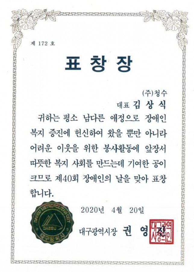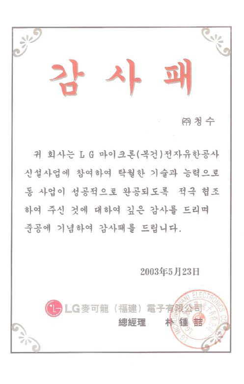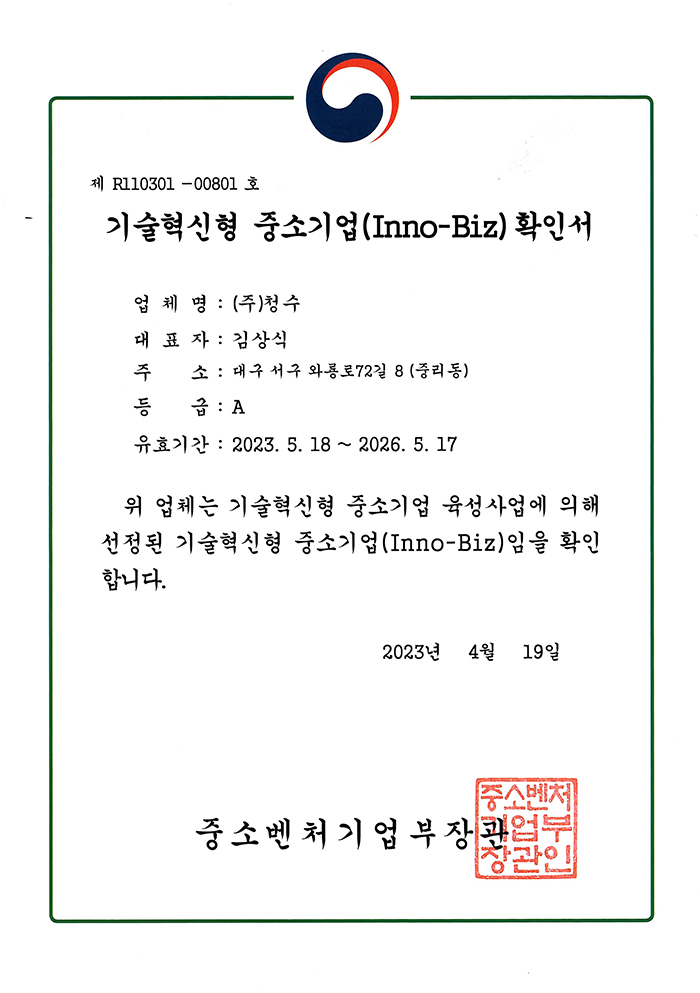 ※ 등록증/인증서 사진을 터치하시면 확대보기 및 다운로드 받으실 수 있습니다.